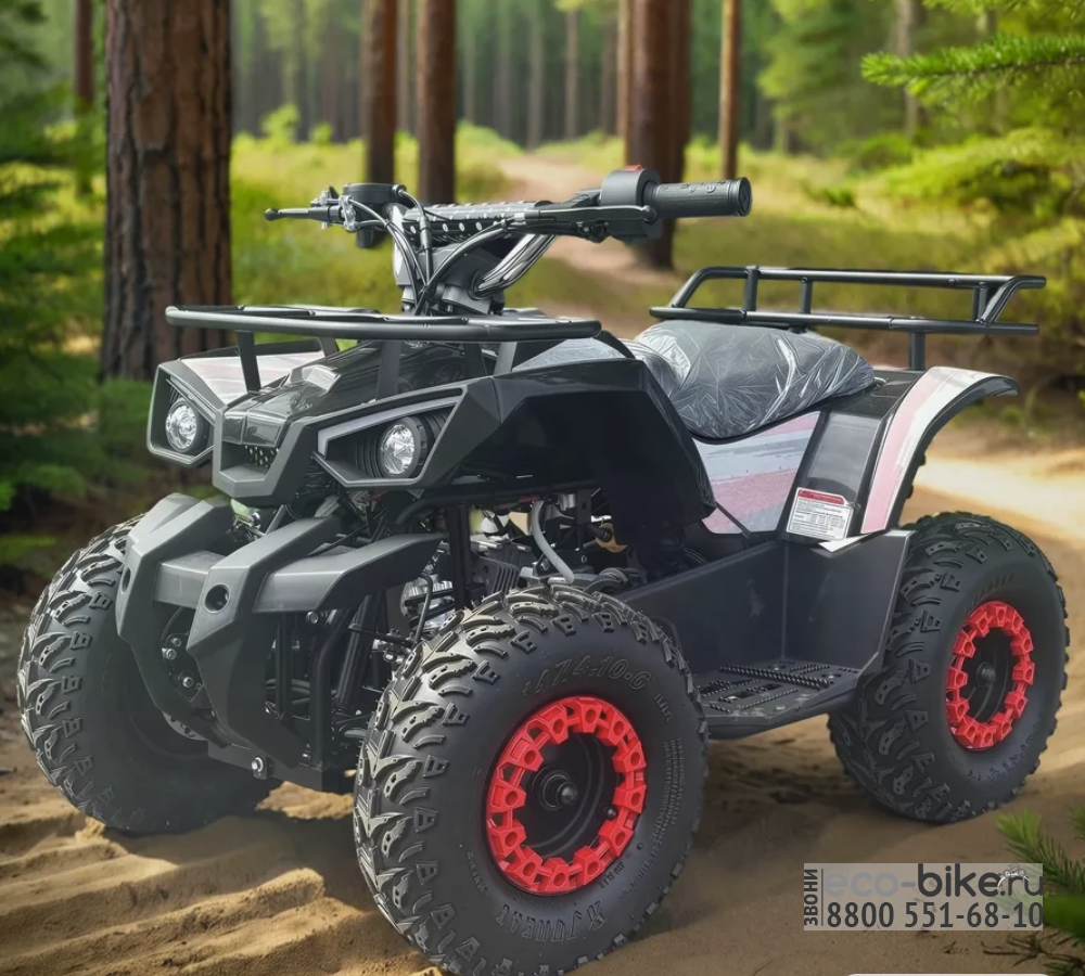 Gbike Snowman 800W оснащен электродвигателем мощностью 800 Вт и гелиевым/литиевым аккумулятором, заряжающимся за 8/15 часов. Запас хода на одном заряде – до 20/50 км (в зависимости от веса ездока и типа дорожного покрытия и АКБ). Большие пневмоколеса с протектором и пружинная подвеска облегчают прохождение бездорожья. У квадрацикла прочный корпус и удобное мягкое седло. Защитные крылья позволят не запачкать одежду при езде по лужам и грязи.